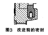 顯然,若按照通常圖3所示的鑲嵌環(huán)結(jié)構(gòu)。當溫度的升高,四氟的膨脹,受結(jié)構(gòu)的約束,造成端面PTFE端面產(chǎn)生很大的變形,導(dǎo)致密封失效。當溫度的降低,四 氟的收縮,四氟與金屬貼合面出現(xiàn)間歇。也會導(dǎo)致密封的實效。