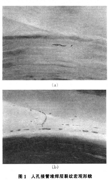經(jīng)上述手段檢驗發(fā)現(xiàn),裂紋產(chǎn)生在人孔接管的堆焊層,經(jīng)很聲波檢測進一步確定,裂紋深度未達到基材,缺陷存在于人孔接管堆焊層。